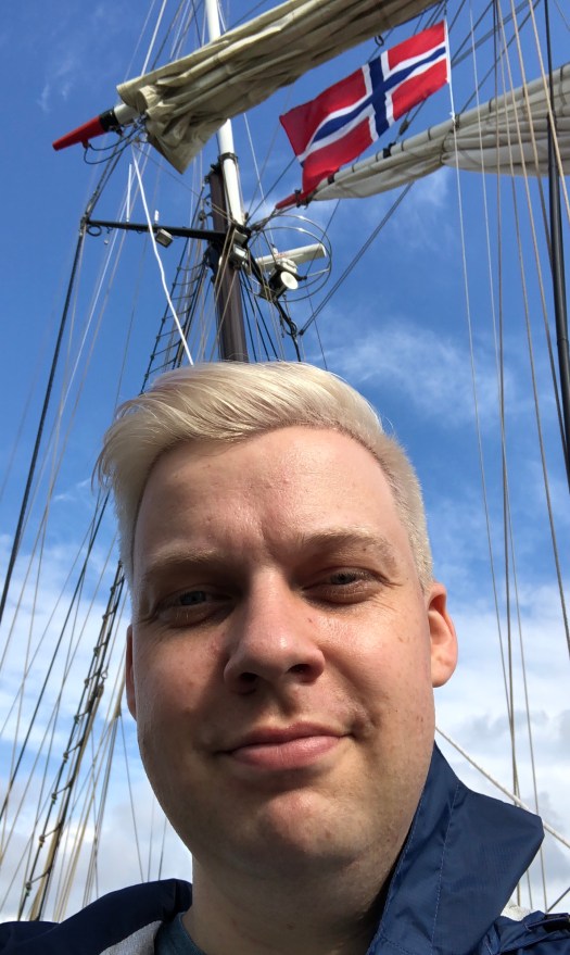 And here’s me attempting to be artsy with a Norwegian flag flying on a boat near the SALT installation.