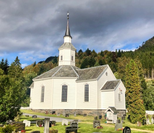 Our stroll through the town revealed a fascinating mashup of modern convenience with old-world vestige. Atop houses still featuring antique wooden architecture, cable satellites protrude into view. Kitty-corner from the Lavik Fjord Hotell, built in the 1860s, sits a parking lot for supercharging electric Tesla cars. And next to the harbor, where giant electric barges ferry vehicles across the fjord, a local man has posted advertisements for lessons in time-tested, old school fishing techniques. Evidently, the age of the town’s population skews quite old: “the young ones need jobs,” Bjørg explained, echoing a refrain that has often accompanied discussions of why our ancestors would have left such a beautiful country in the first place.