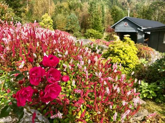 When speaking about the fjords, I would normally suggest the order of the nouns in the title ought to be flipped; few sights are capable of relegating the view across the water to second place. But Bjørg’s epic garden might be one such giant slayer. Only a truly passionate horticulturalist could love living here–and Bjørg is one, admitting to spending eight to nine hours per day working in her yard–but for lucky house guests like us, the chance to sit back and enjoy the fruits of her labor is simply breathtaking. A professional photographer could find many hours’ worth of content here. (My father demonstrated this earlier in the day when our attempt to exit Bjørg’s property for our walk around Lavik was severely delayed by multiple moments of sudden inspiration.)