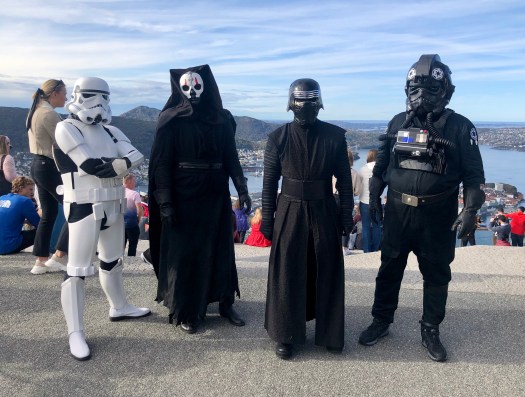 With some businesses and sights often shuttered on Sundays, it may take some heightened ingenuity to see what mischief we can encounter tomorrow, but I am at least heartened that Bergen’s famous rainclouds have, to this point, remained out of sight. May the Force be with us.