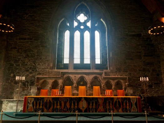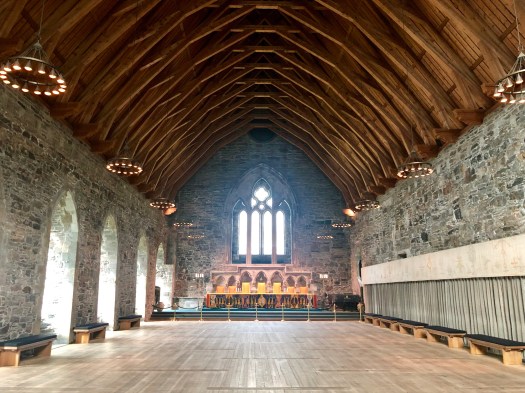 Close by, also in Bergenhus Fortress, is HÃ¥konshallen–Haakon’s Hall–built at an unspecified time also in the thirteenth century. (Along with RosenkrantztÃ¥rget, HÃ¥konshallen is the only other building still standing from the original fortress.) While the exterior of the building is in good shape and maintains an awesome presence inside the fortress, the interior was forced to be reimagined through restoration after a Dutch ship carrying many tons of ammunition caught fire and detonated near the quay of Bergen in 1944, devastating the nearby landmarks. Its main feast hall is still a sight to behold, though the imagination wonders what it must have looked like in its inception.