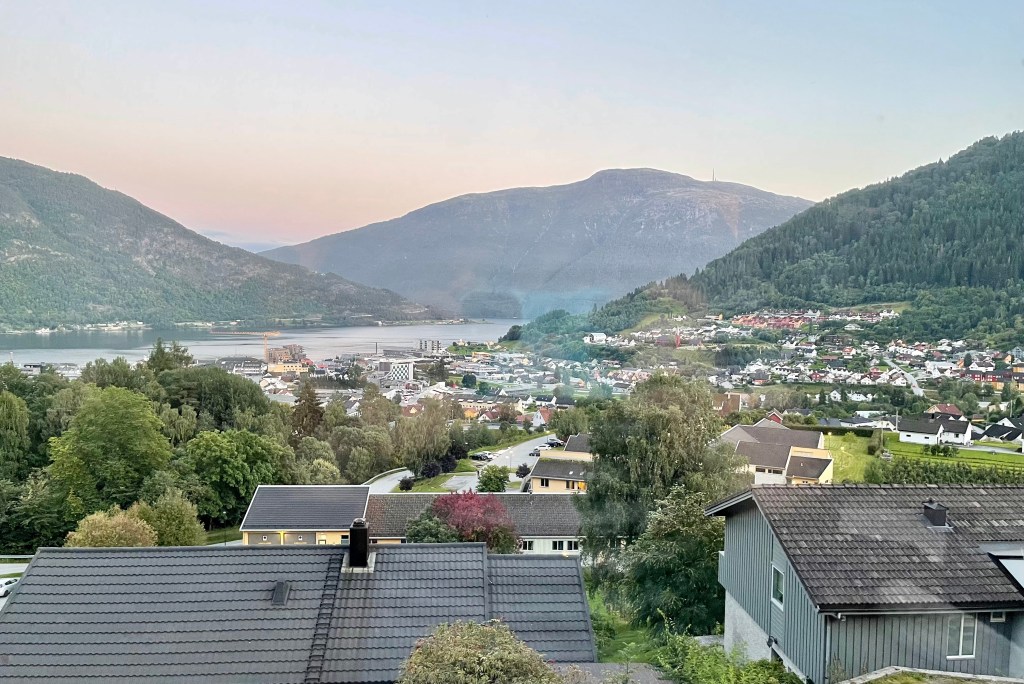Our evening concluded with our consummate hosts, Marit and Geir, who not only represent two of our most cherished relationships in all of Sogndal, but also are owners of one of the finest living room window views you could ever imagine. Their vista of the majesty of Sogndal is unmatched, nearly demanding your attention for its breathtaking beauty. It’s a scene that leaves a smile on my face and a fullness in my soul, even after all the times I’ve witnessed it. What a joy it is to be back. What fortune I have to be here.