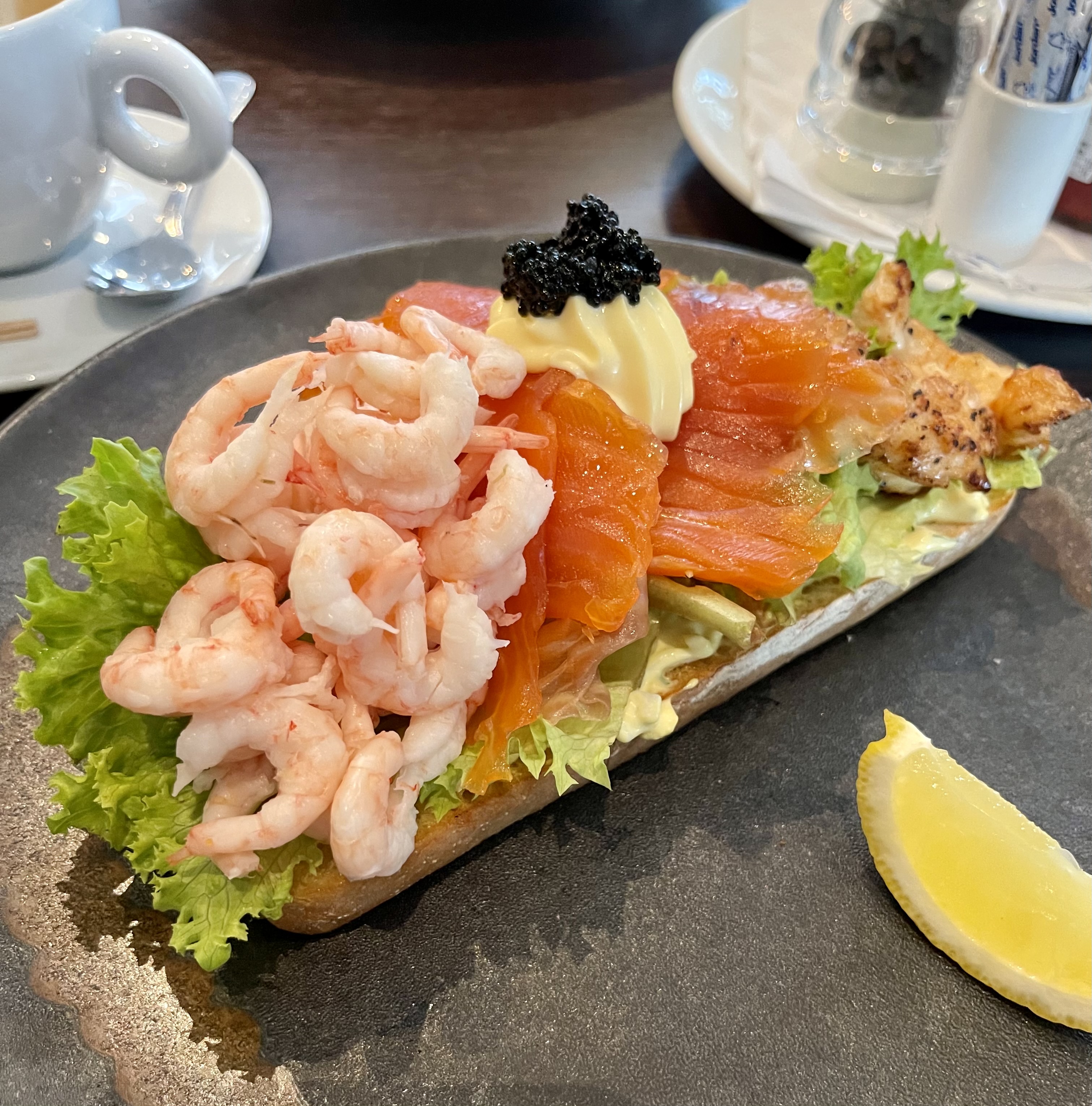 As I raced eagerly to the bar inside the hotel, I was met with two disappointments: first, that the hero of our previous tale–bartender and barista extraordinaire, Filip–was nowhere in sight, and second, that the crab toast I so coveted was no longer on offer. But whatever misery I felt was quickly dispelled by the skill and service of current staff member Lukas and the Sognefjord Sandwich I procured from the latest menu. Not even the bratty Americans seated beside us, who gave a masterclass in the classically American experience of blaming service staff for one’s own mistakes, could dim the joy from the meal we were served today (though I came perilously close to intervening).