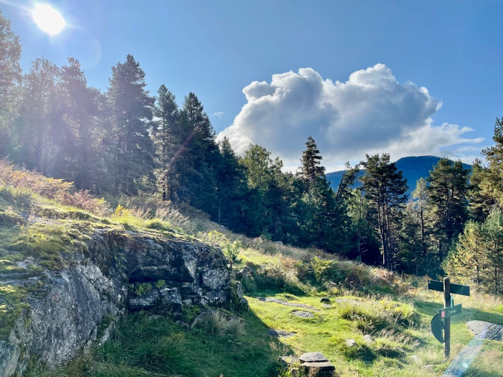 When I heard about the Hesteggi trail last week, it felt like the perfect setting for my redo attempt. The trail promised phenomenal views of the city of Sogndal below and had the added feature of allowing trailgoers to choose a difficulty mode: the trail starting at Kjørnes, with a steeper, more demanding route; or the one departing from the Kaupanger museum, with a longer overall walking time but a far more accessible incline. Ever eager to punctuate my achievement, I chose the former.