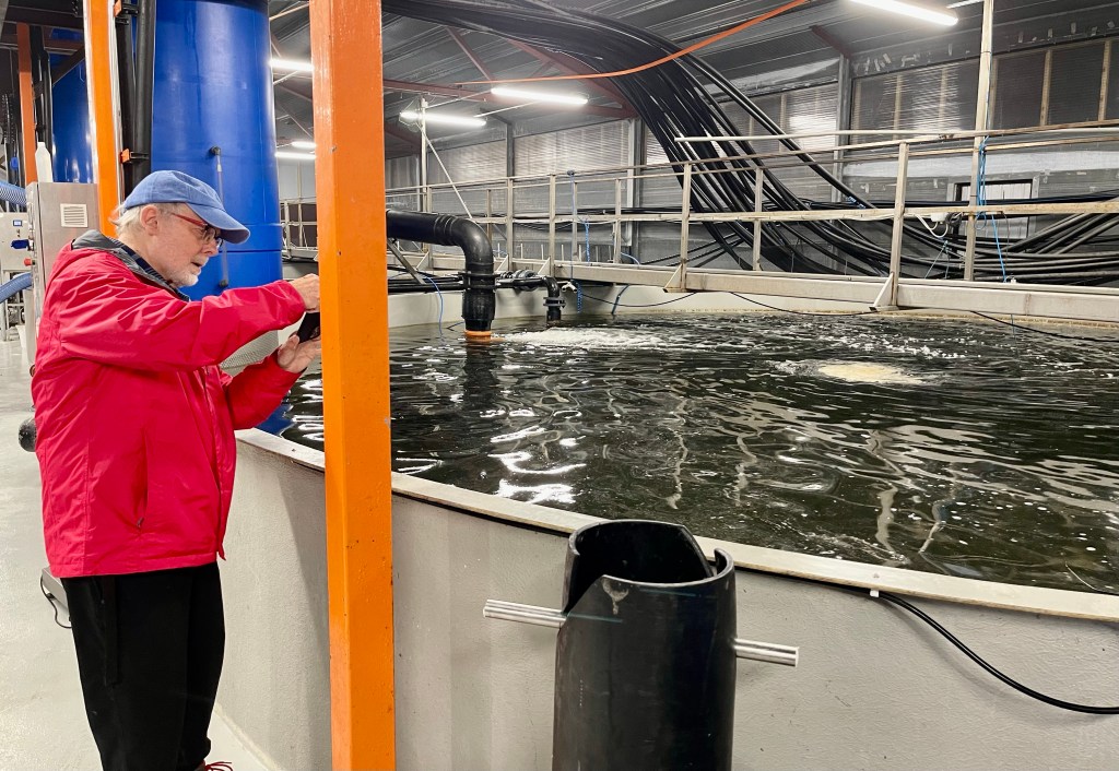 In the middle of our visit to their house, Bjørn took us to visit a sustainable trout farming operation in Leikanger, a curveball that admittedly was not on my radar for the evening but was nonetheless fascinating to see. It was remarkable to see the relatively small space footprint required to produce this renewable resource at such a scale—a drop in the ocean when compared to agricultural crops that demand wide swaths of land for cultivation.