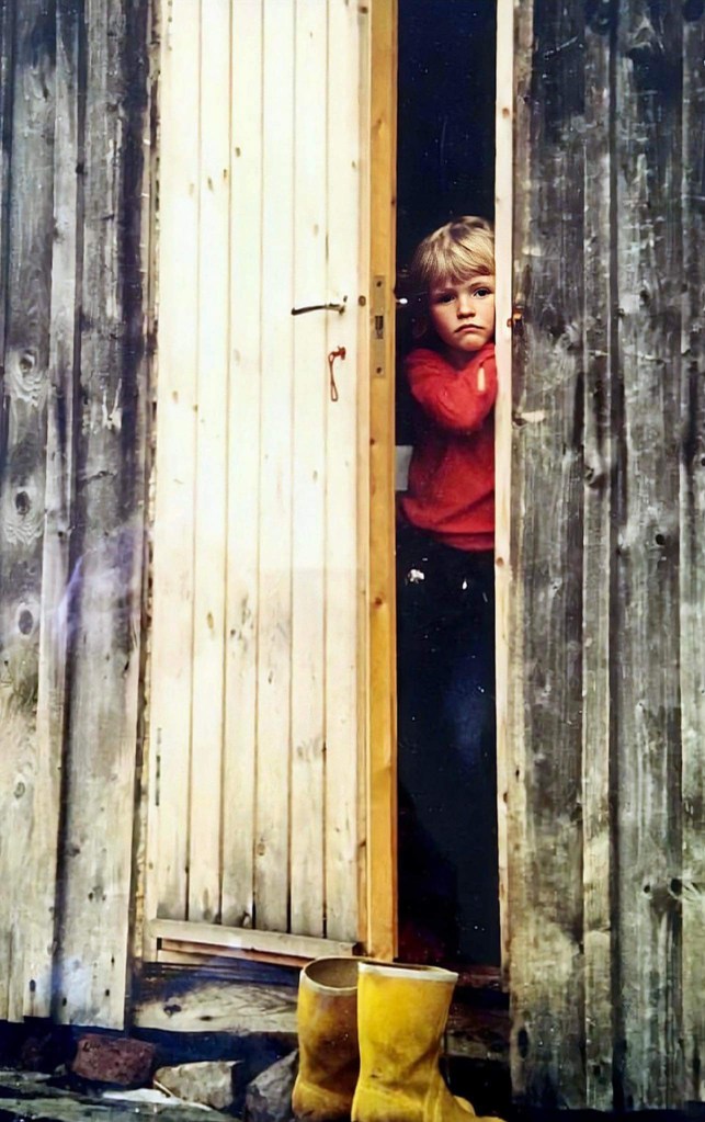 We value all of our connections with Foss relatives in Norway, but, naturally, we know some of them better than others, often as a result of generational proximity and/or shared interests (the most obvious example being the special relationship between my father and Erik, both family history buffs in the extreme). Trude, for me, is one such cherished relationship. Although we are separated in age by 15 years, we occupy the same generation in the Foss family tree, and there is an ease of conversation I enjoy with her that is unique. Her distinctive connection to our family was perhaps pre-ordained in 1977, when my father took what remains, to this day, one of his favorite photographs among the tens of thousands he possesses: of a six-year-old Trude shyly peering out from the doorway of a Fosskamben cabin, curiously and cautiously surveying her surroundings. The photo still sits on Erik’s wall today.