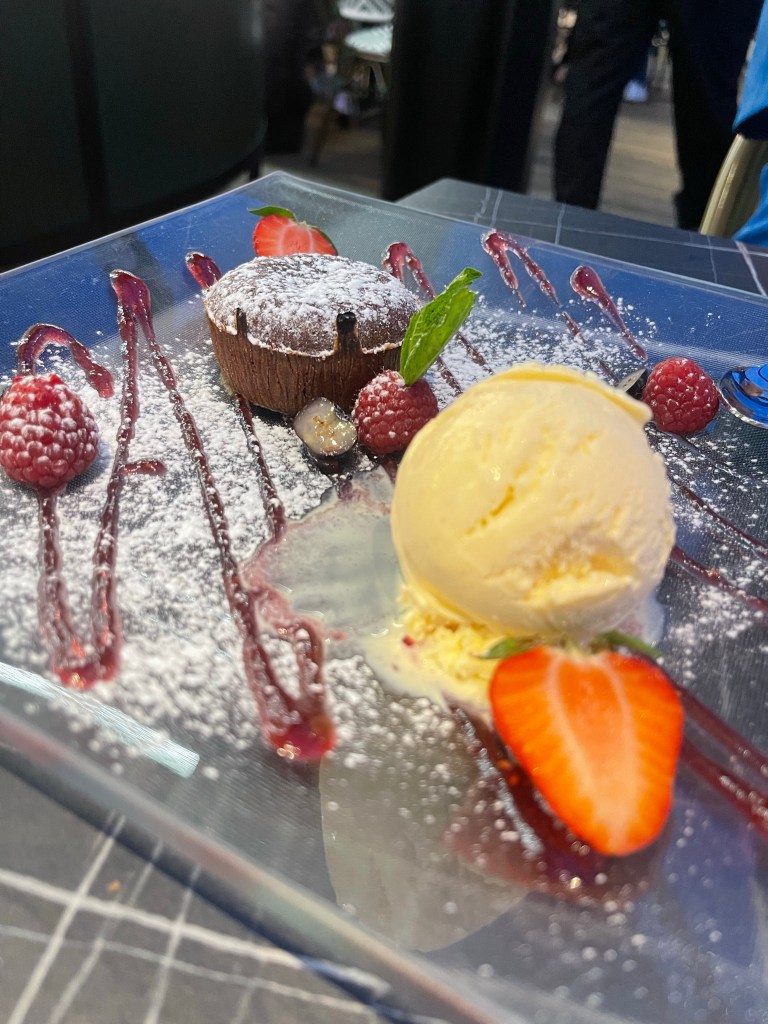 To salute our final weekend in Sogndal, my dad and I shared a slightly elevated (wink wink, Lionheart) meal at La Pergola, the flagship Italian restaurant at the local hotel. Our meal featured nods to all of our ancestral and contemporary homes: glasses of Pinot Noir (Oregon), cheese (Wisconsin), and ox filet (Norway), as well as an enviable view of the Foss family waterfall from our tableside window. We aren’t quite ready to leave yet, but our departure is an eventual reality we must begin to process, and it’s a little easier to do with a glass of wine and a chocolate tart.
