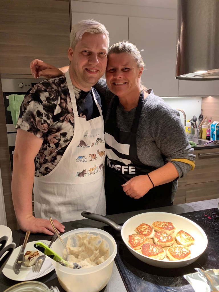 The next stop on our farewell tour brought us to Lars and Olaug Marie’s house, where we were also eventually joined by their son, Johannes, for dinner. My dad and I are both adventurous eaters who enjoy trying unfamiliar things, so we were gratified to find that Lars had prepared a classic Norwegian dish we had not yet tasted: raspeballer. (The dish has many pseudonyms depending on where it is being enjoyed, also referred to as potetballer, kompe, and klubb.) I suppose an adequate description would be that they are meatballs, except the meat is replaced with potatoes as the star ingredient. They are traditionally accompanied by a variety of condiments and sides; Lars’s version arrived with sausages, a kohlrabi and carrot mash, and bacon. I truly enjoyed the dish and may need to try my hand at it when I return to the states.