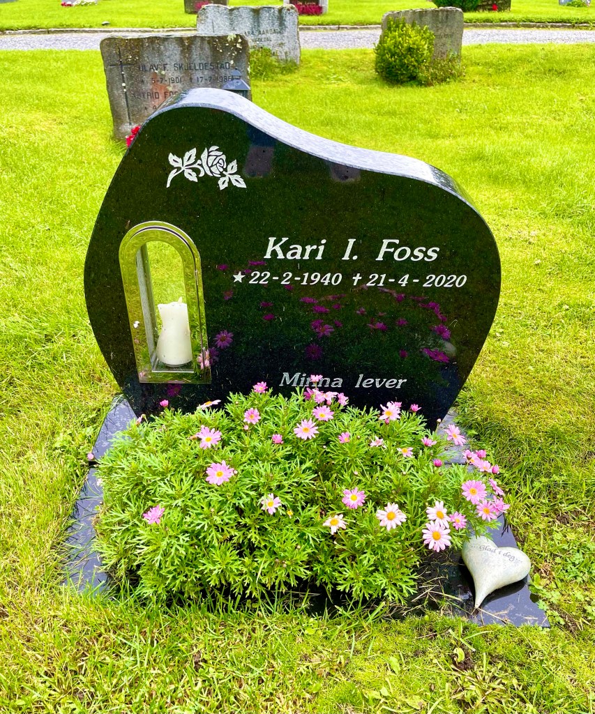 Kari has played an important role in the maintenance of the connection between the American and Norwegian sides of the Foss family. When my dad first started visiting Norway in the 1970s and 80s, Kari was a dependable constant in his life, acting as a penpal when he was overseas and a daily conversation companion when he visited Sogndal. (He stayed at Erik and Kari’s house, and Erik was often away at work. My dad recalls their remarkable connection despite a considerable language barrier.) When I was born, Kari hand knitted a beautiful sweater–in the finest Norwegian colors–and gave it to us as a gift welcoming me into the world. I, of course, don’t remember this from the actual time period, but I was touched to learn this detail later in adulthood. It illustrates the type of person Kari was, and I was glad to visit the site honoring her memory today.