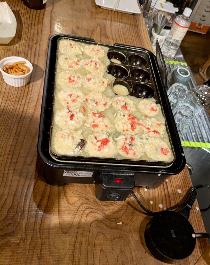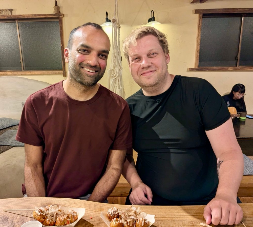 Our evening wind-down activity gave us a chance to kick it with one of the staff members at Hakonetent while we had a takoyaki party and cooking class. Paresh and I were the only two hotel guests who attended the event (not everybody can have good taste), so the interaction was much more informal and we got to chit-chat with our teacher, Yugo, about his brief time working here. At one point, he and another staff member remarked about how he was nervous having to hold conversations with us in English because casual conversation is so much harder than written communication or listening exercises. It’s easy to forget that language anxiety runs in both directions. Our reassurances to him that he was doing a spectacular job despite his more pessimistic self-appraisal were a good reminder to us that making the effort to push through discomfort in order to form connections with people is not only rewarding, but also necessary. That has been shown to us over and over again via the graciousness of nearly all of the Japanese people with whom we’ve interacted while here.