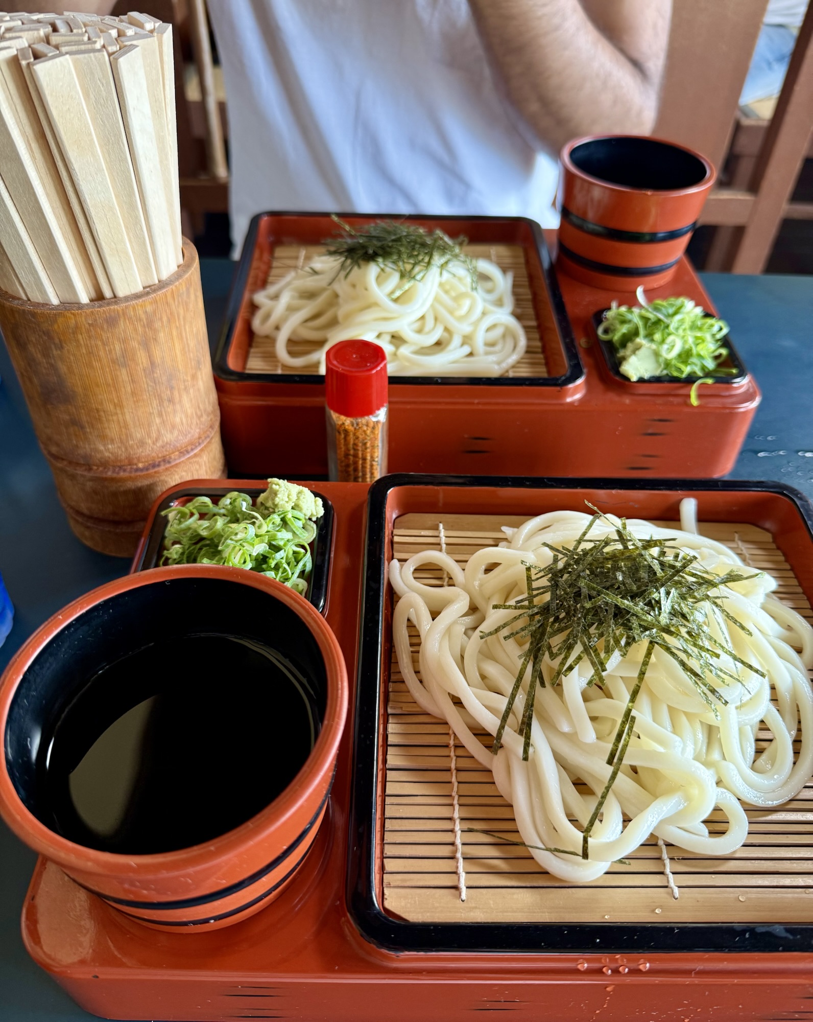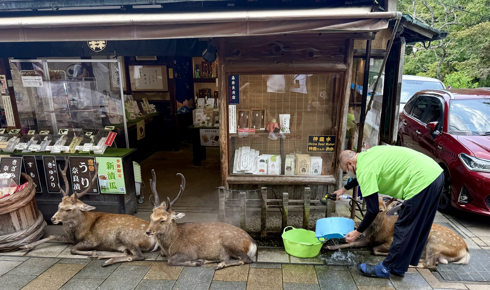 A meal we hadn’t yet managed to pin down in Japan was any kind of noodle situation, whether it be ramen, soba, udon, or anything of the like. We fixed that in Nara, although it took us more than one adjustment to our plans to do so after our first choice ended up being sold out for the day. Cold udon noodles dipped in a salty broth were the perfect companion on this hot day; we had considered trying persimmon leaf sushi, which I understand is something of a Nara specialty, but with our stomachs on the struggle bus, it felt like a bit of a gamble.
