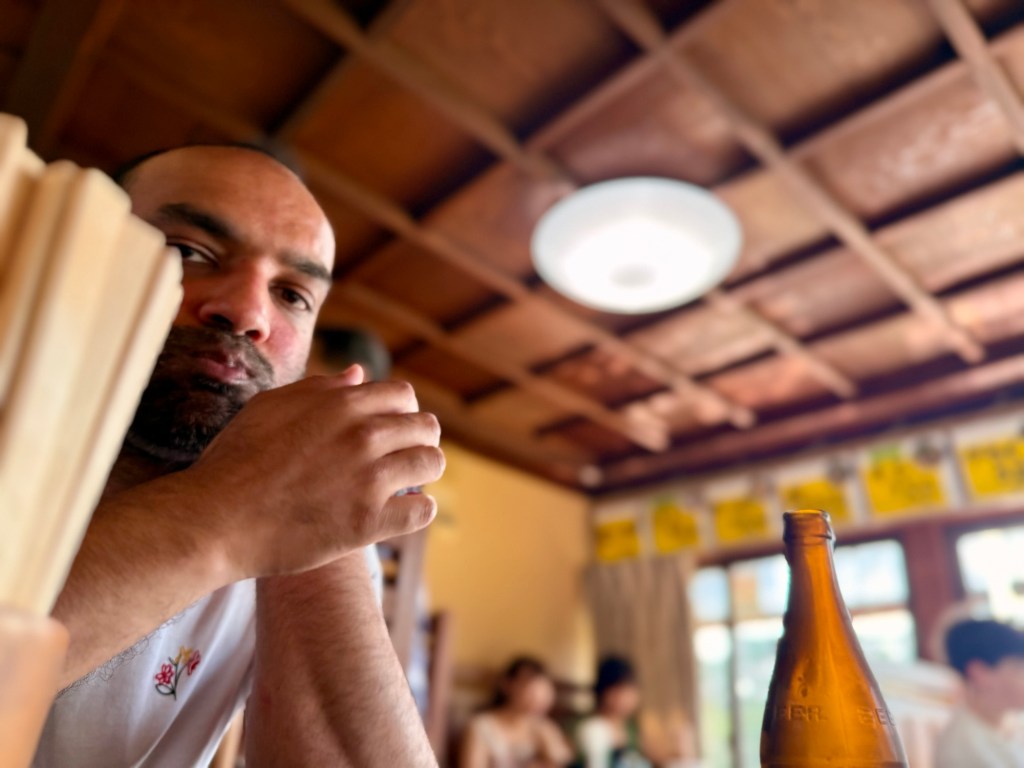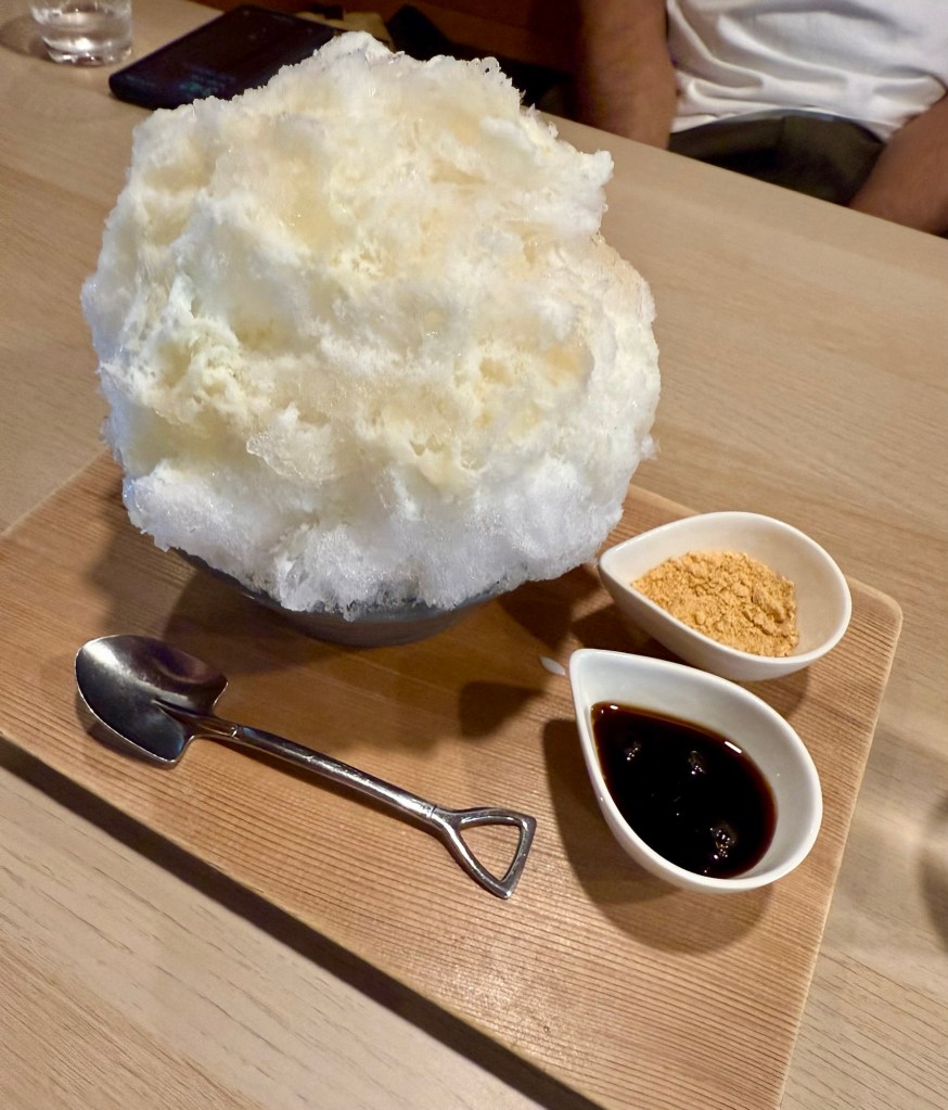 Before retracing our steps to Osaka, we decided to grab some kakigōri from a small, local shop to further cool off and rest our legs. Mine featured kinako, an ingredient to which I’ve taken a rather strong liking on this trip. It’s a roasted soybean flour that is often used as a topping or a coating, similar to how we would use powdered sugar to finish lemon bars, for example. Kinako has a roasty, nutty, yummy flavor that goes well with some of the deeper, richer flavors that are common here, like buckwheat, molasses, and soy.