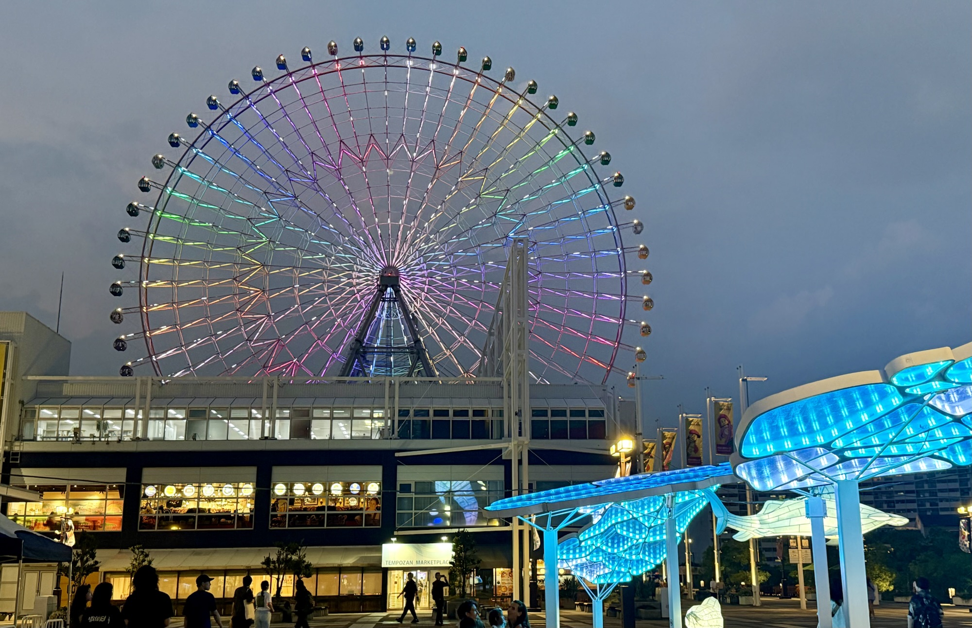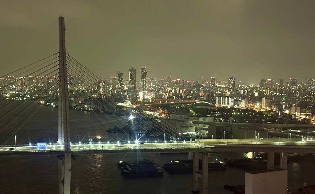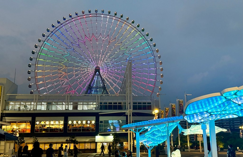 As I readied myself to make for the subway back to the Airbnb, I spotted the flashing lights of the Tempozan Ferris Wheel, which demanded my attention. At the time of its opening in 1997, Tempozan was the tallest ferris wheel in the world, and while it has since been eclipsed by a few others, its visage nonetheless looms breathtakingly large. I swallowed my nerves and rode to the top, taking in views at the apex that one usually only sees when coming in for landing on an airplane. Osaka is dazzling at nighttime, and I am glad I got to witness it from on high before our time here comes to an end.