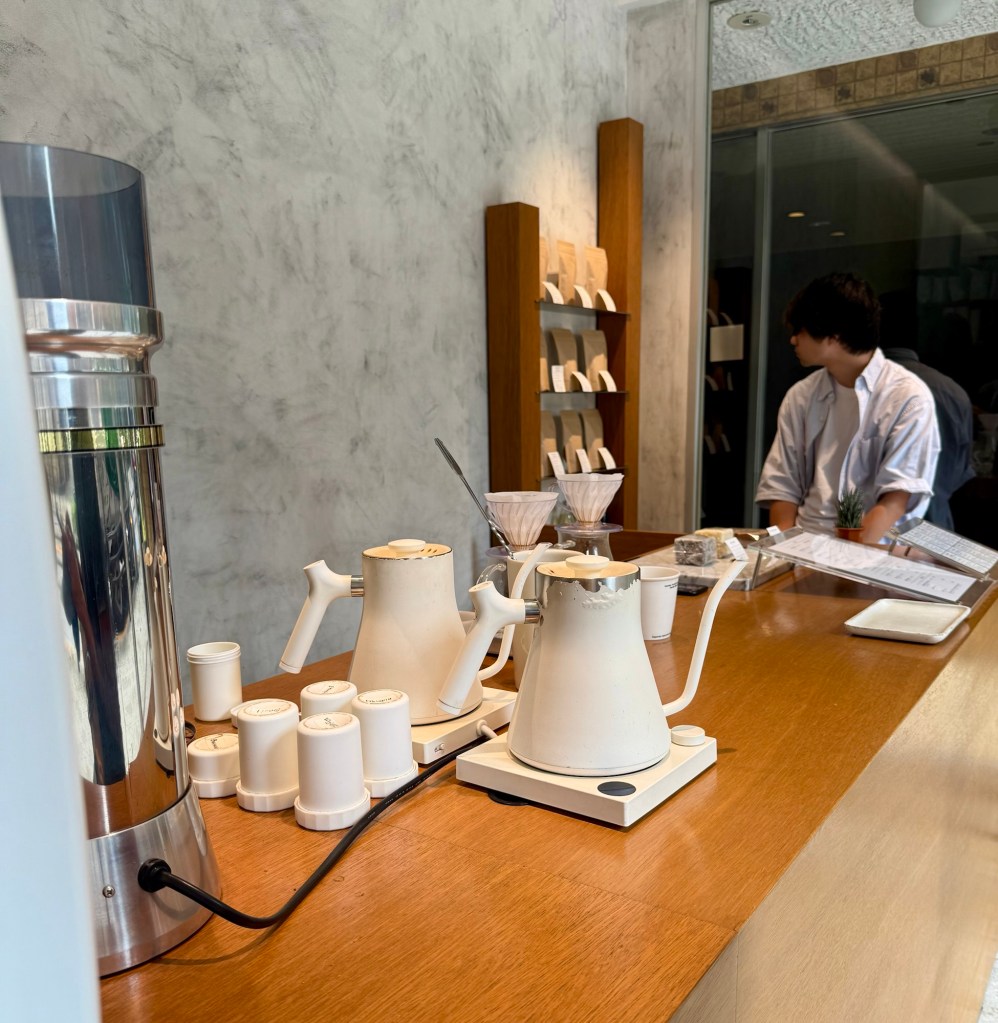 Our precursor to the day’s exploration was a stop at BunCoffee, a small (and I mean small) kiosk specializing in pourover coffee and Australian pastries called lamingtons, which are small layer cakes coated in a thin layer of chocolate and finished with coconut flakes. The table—which I hesitate to even call a table—was better suited to holding a few candles than multiple cups of coffee with accompanying food items. But it did make for a hilarious ambiance. In fairness to the establishment, not much else would have fit in the limited space, and it did give us a chance to practice our balancing skills. Add this experience to the list of times I’ve wondered: is Japan just fond of smaller things, or are we too used to outsized American excess?
