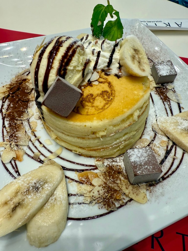 Artnia, a small-ish shop that neighbors the Square Enix headquarters, serves as both a source of merchandise and a café with themed food options for enthusiasts like us. With an expanded selection on offer over some of the shops we encountered yesterday in Akihabara, Paresh secured some memorabilia from his favorite game, Final Fantasy III, before we settled in for some of the culinary fare. Our pancakes came branded with images of famous characters from the franchise and were surprisingly tasty beyond what you’d expect for this level of gimmick.