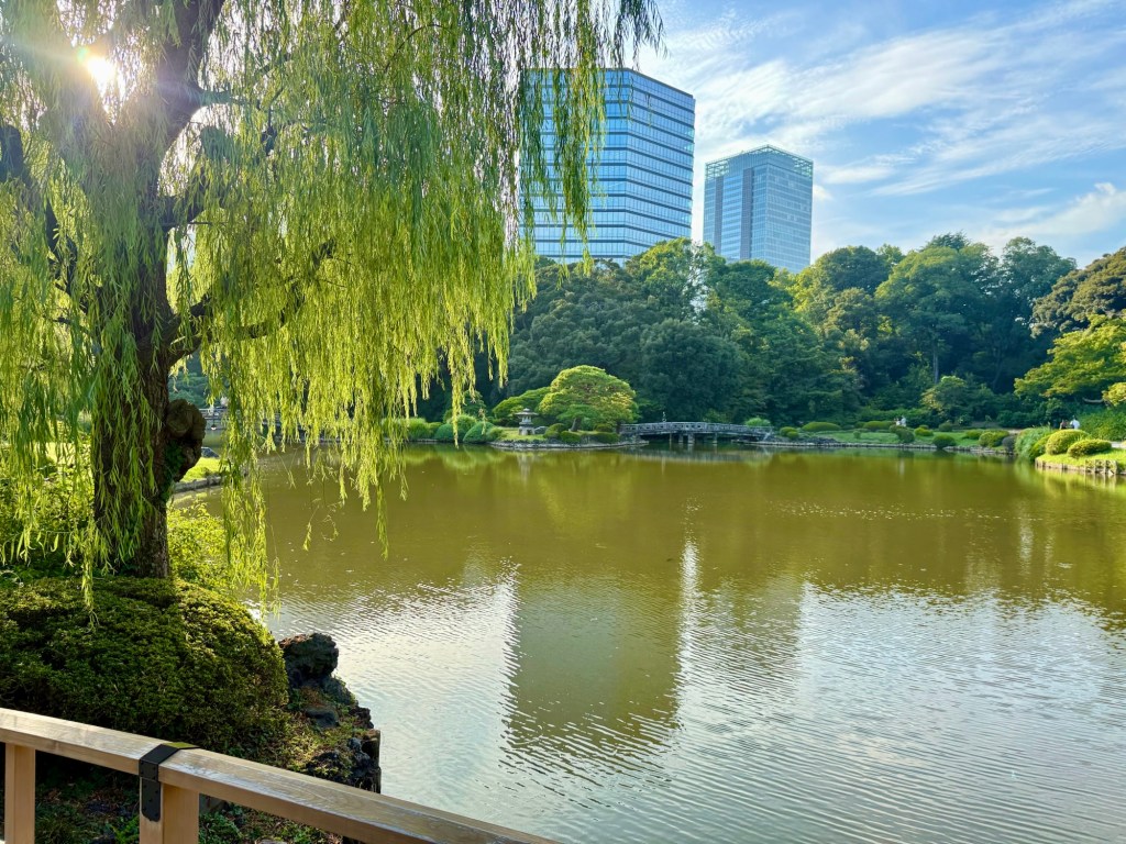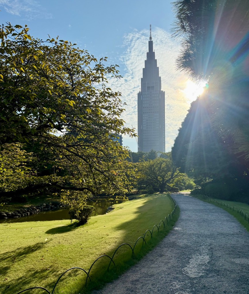 Recognizing that tomorrow’s mercury would likely ascend into triple digits, and also cognizant that our step count had dropped considerably in Kanazawa, we chose to spend the remainder of the afternoon enjoying the Shinjuku Gyoen National Garden, an expansive green space with multiple different sections that manages to exude peace and calm despite its placement in the middle of the world’s busiest city. With juxtaposing vistas that combine tranquil greenery with the towering cityscape on the horizon, Gyoen serves as a respite to Tokyo’s otherwise ceaseless whir—although I commented that the place is probably crawling when the cherry blossoms are in bloom in the Spring.