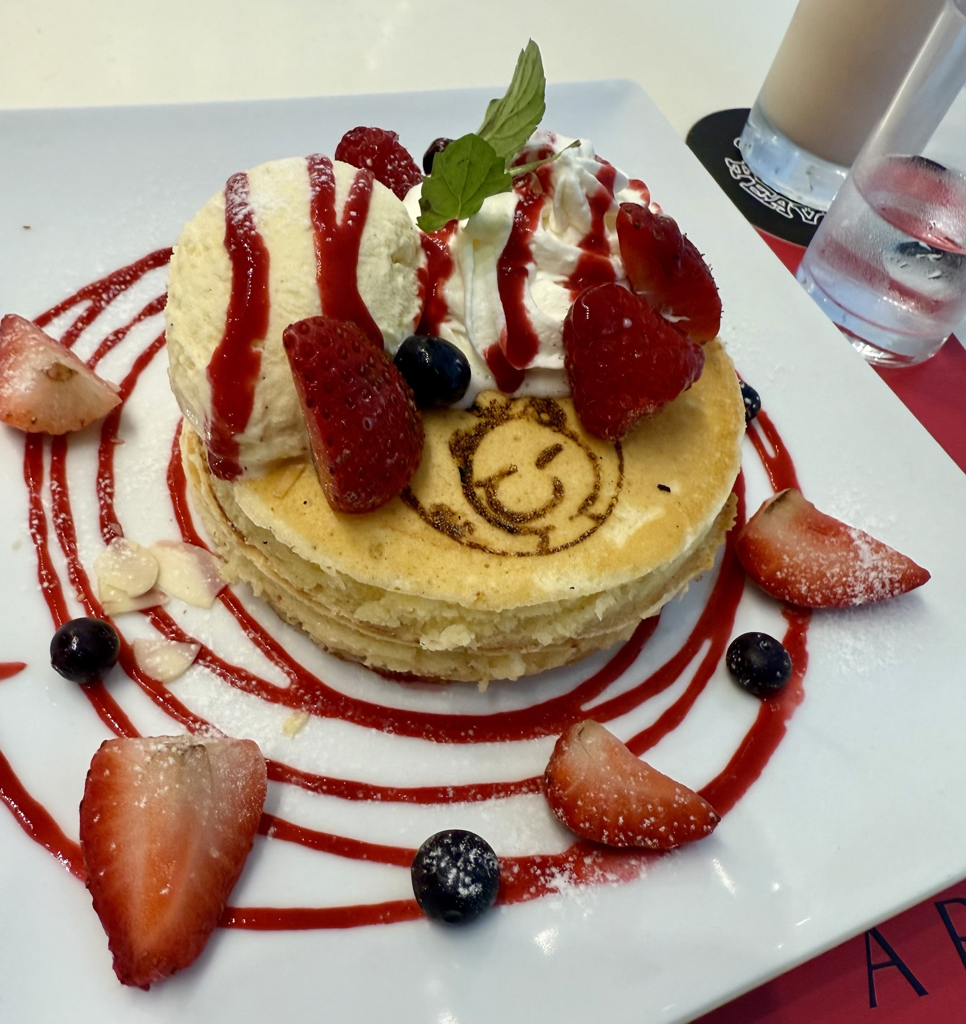 Artnia, a small-ish shop that neighbors the Square Enix headquarters, serves as both a source of merchandise and a café with themed food options for enthusiasts like us. With an expanded selection on offer over some of the shops we encountered yesterday in Akihabara, Paresh secured some memorabilia from his favorite game, Final Fantasy III, before we settled in for some of the culinary fare. Our pancakes came branded with images of famous characters from the franchise and were surprisingly tasty beyond what you’d expect for this level of gimmick.