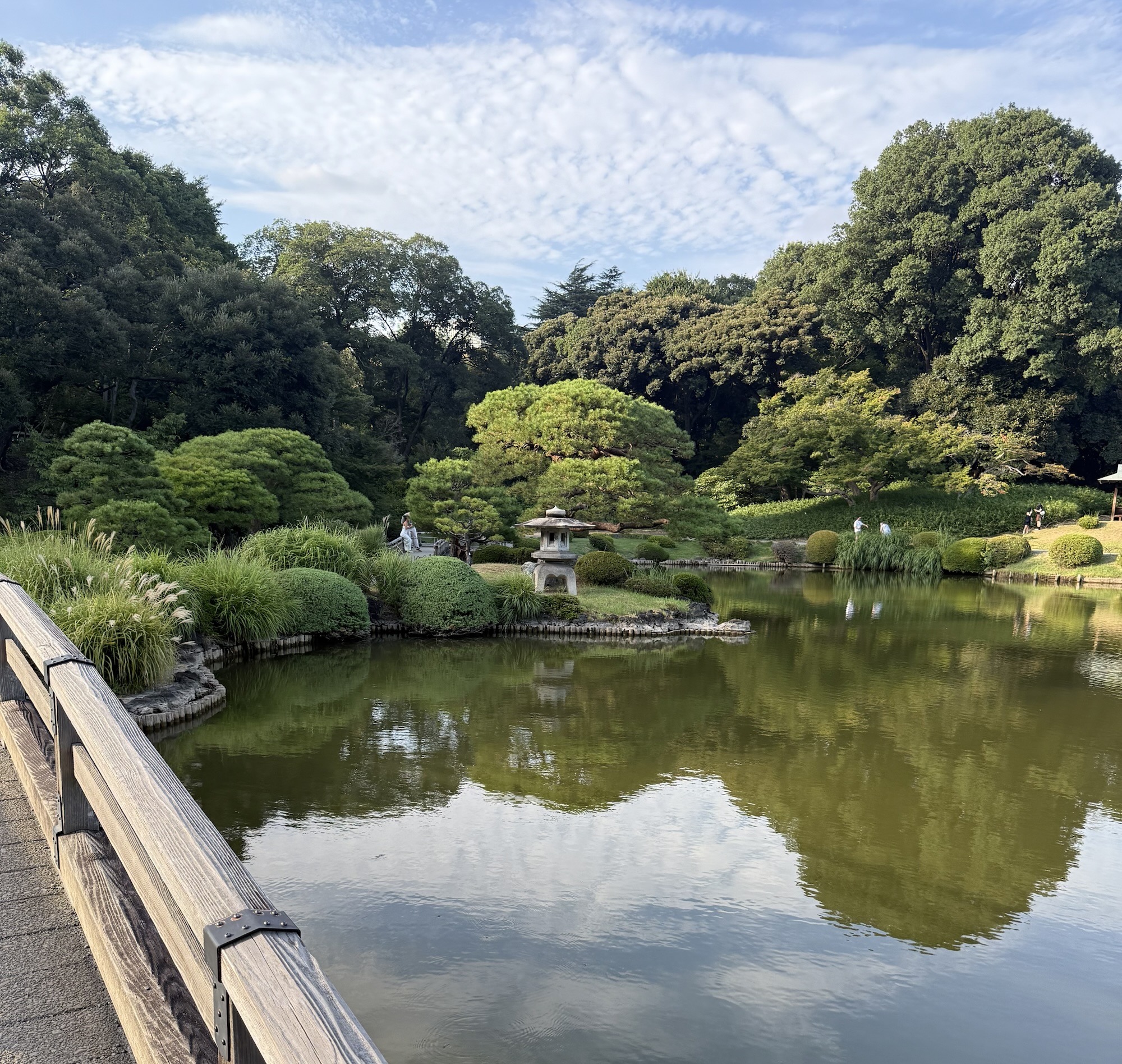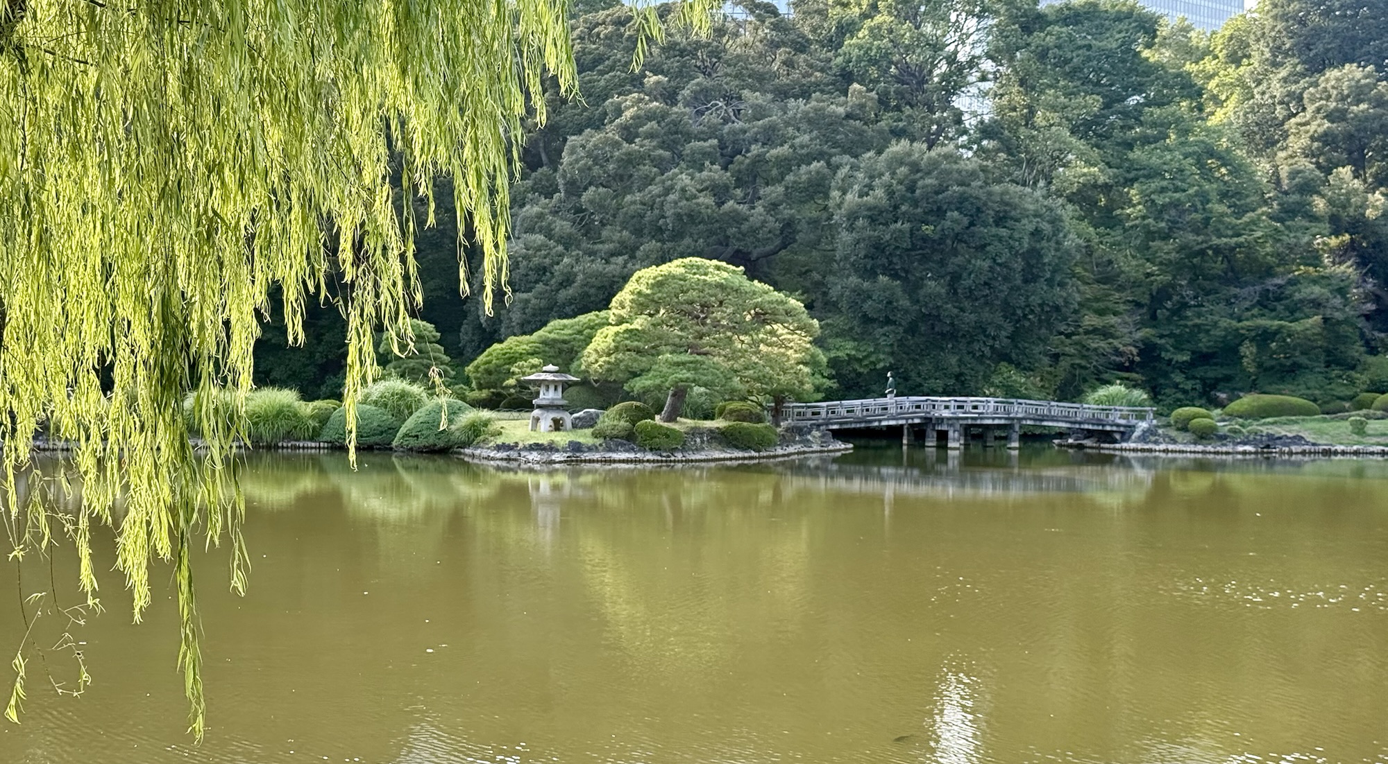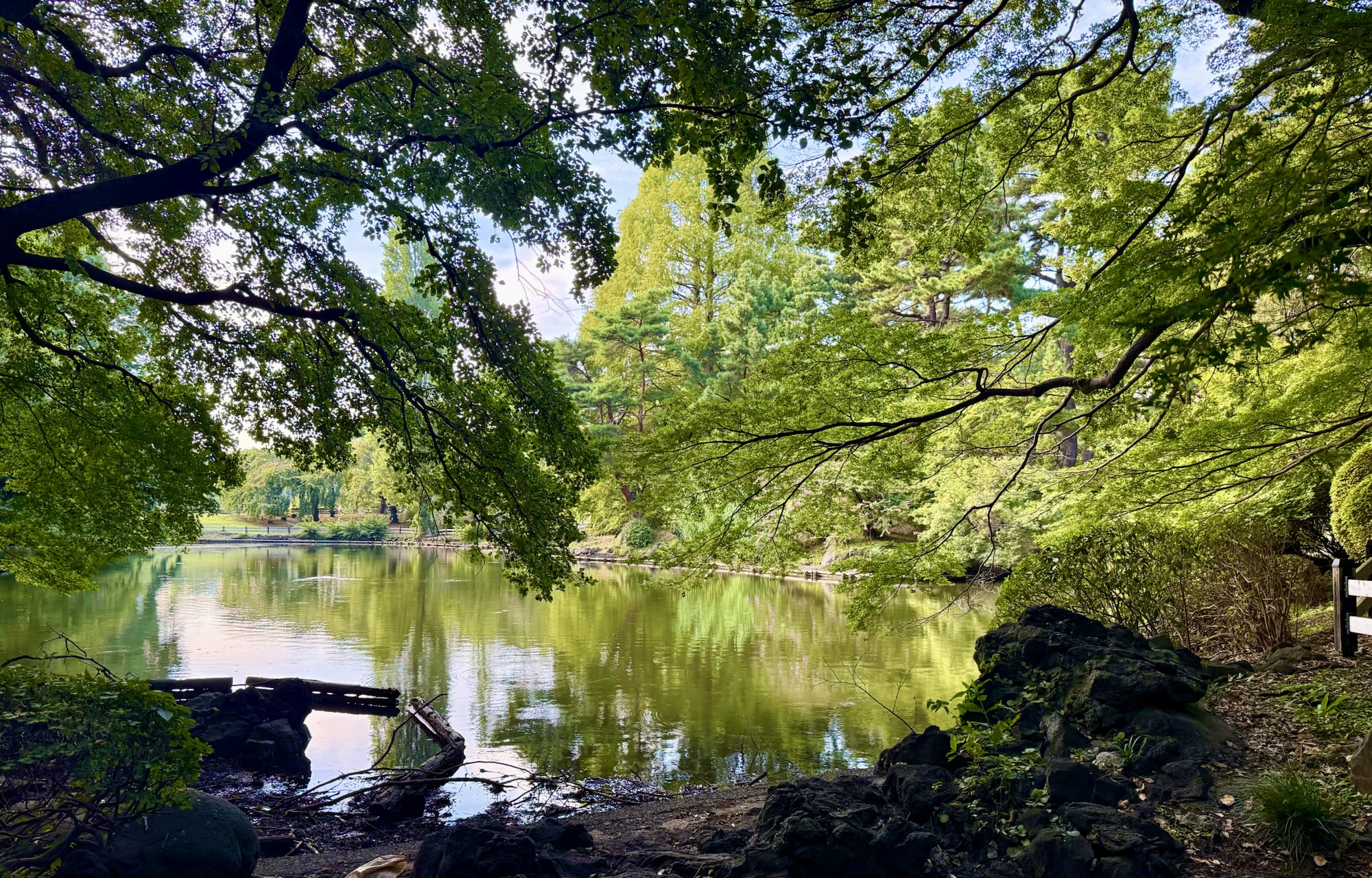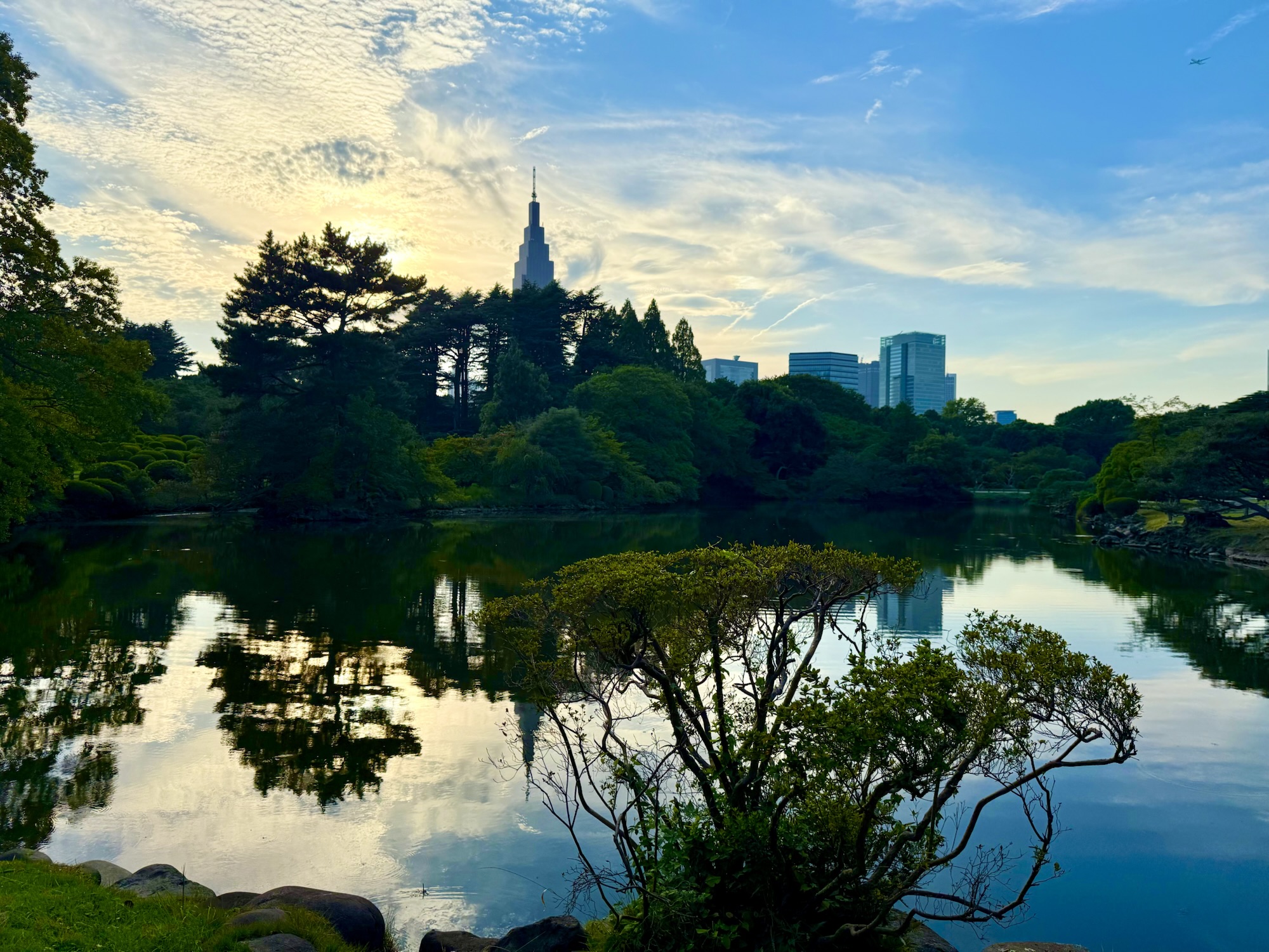 Recognizing that tomorrow’s mercury would likely ascend into triple digits, and also cognizant that our step count had dropped considerably in Kanazawa, we chose to spend the remainder of the afternoon enjoying the Shinjuku Gyoen National Garden, an expansive green space with multiple different sections that manages to exude peace and calm despite its placement in the middle of the world’s busiest city. With juxtaposing vistas that combine tranquil greenery with the towering cityscape on the horizon, Gyoen serves as a respite to Tokyo’s otherwise ceaseless whir—although I commented that the place is probably crawling when the cherry blossoms are in bloom in the Spring.